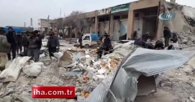 Suriye’nin İdlib kentinin Ma’ar Mesrin bölgesine Esad rejimine ait uçakların düzenlediği hava saldırında çok sayıda sivil hayatını kaybetti.