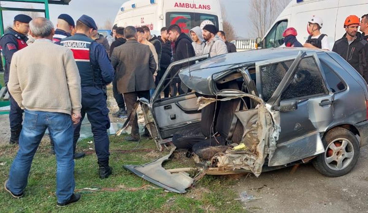 Sakarya'da feci bir kaza yaşandı. Durağa çarpan otomobil ortadan ikiye bölündü. Araçta bulunan iki kişi, kazadan yaralı olarak kurtuldu.