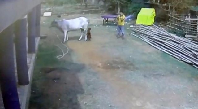 İneğin arkasında duran çocuk bir anda neye uğradığına şaşırdı