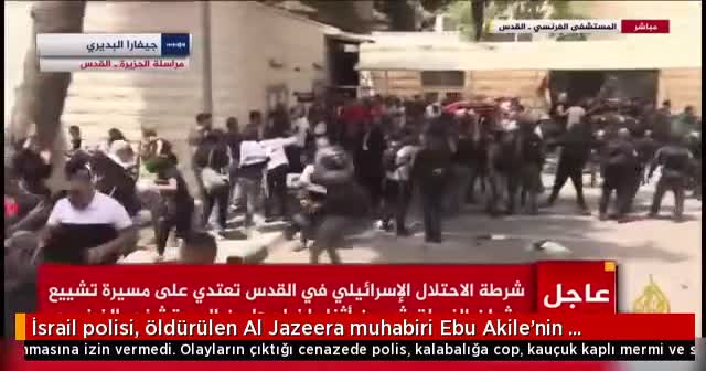 Batı Şeria’da İsrail askerleri tarafından öldürülen Al Jazeera televizyonunun muhabiri Şirin Ebu Akile’nin naaşının taşınması sırasında İsrail polisinin müdahale etti. İsrail polisi, Ebu Akile'nin cenazesinin işgal altındaki Doğu Kudüs'te omuzlarda taşınmasına izin vermedi.
