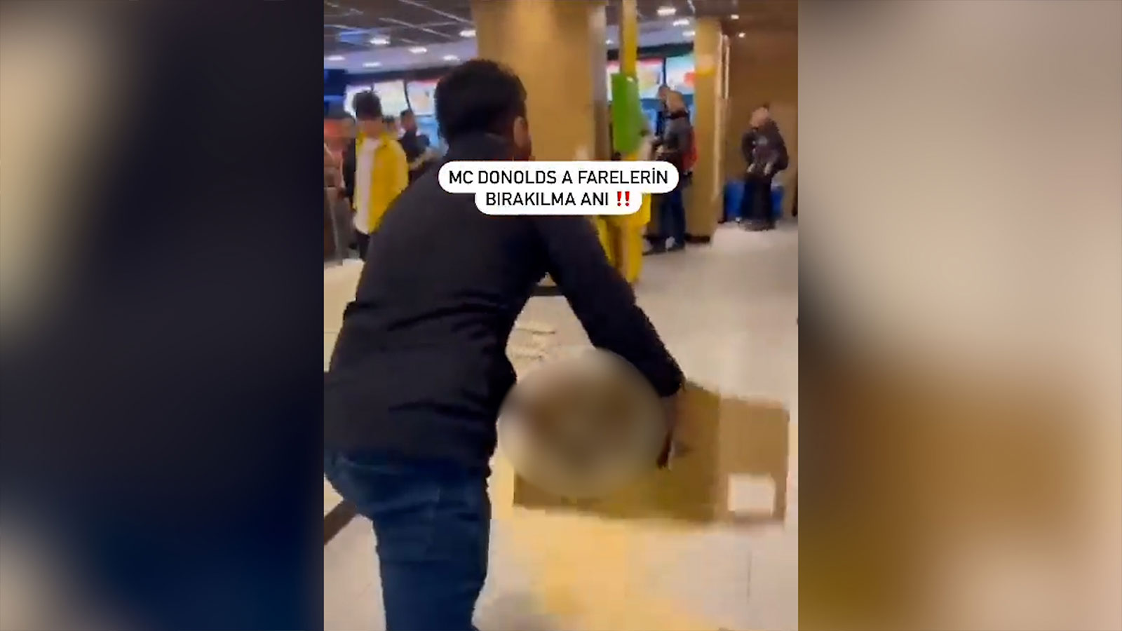 İstanbul'da herkesi şaşkına çeviren protesto! McDonalds şubesine bir kutu fare fırlattı
