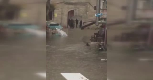 İstanbul’da şiddetli yağış hayatı felç ederken, sel sularında yüzen bir kişi ilginç görüntüler oluşturdu.