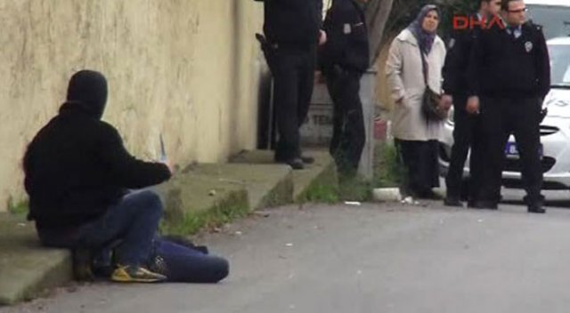 İstanbul Kartal'da elinde bıçak bulunan bir kişi, sokak ortasında kadını rehin aldı.