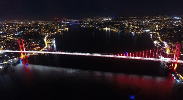 Asya ve Avrupa’yı birbirine bağlayan İstanbul’un 3 köprüsü aynı karede havadan görüntülendi.