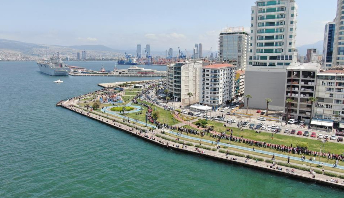 Dünyanın ilk SİHA gemisi, Türkiye'nin de en büyük askeri gemisi TCG Anadolu, İzmirli vatandaşlar tarafından yoğun ilgiyle karşılanırken, hafta sonu ve güzel havayı değerlendirmek isteyen vatandaşlar gemiyi ziyaret etmek için yaklaşık 1.5 kilometrelik kuyruk oluşturdu.