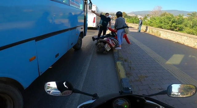 Halk otobüsü şoförünün durak harici yolcu indirmesi kazaya neden oldu, o anlar kask kamerasına yansıdı