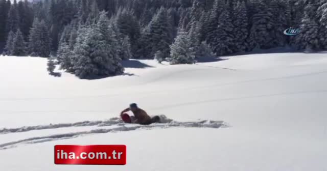 Türkiye'nin en önemli kış turizm merkezlerinden biri olan Uludağ’a yürüyüş için çıkan dağcılar, kar üstünde güreş tuttu.