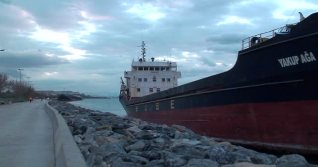 Kartal'da şiddetli lodos nedeniyle karaya oturan iki gemi, kurtarılmayı bekliyor.