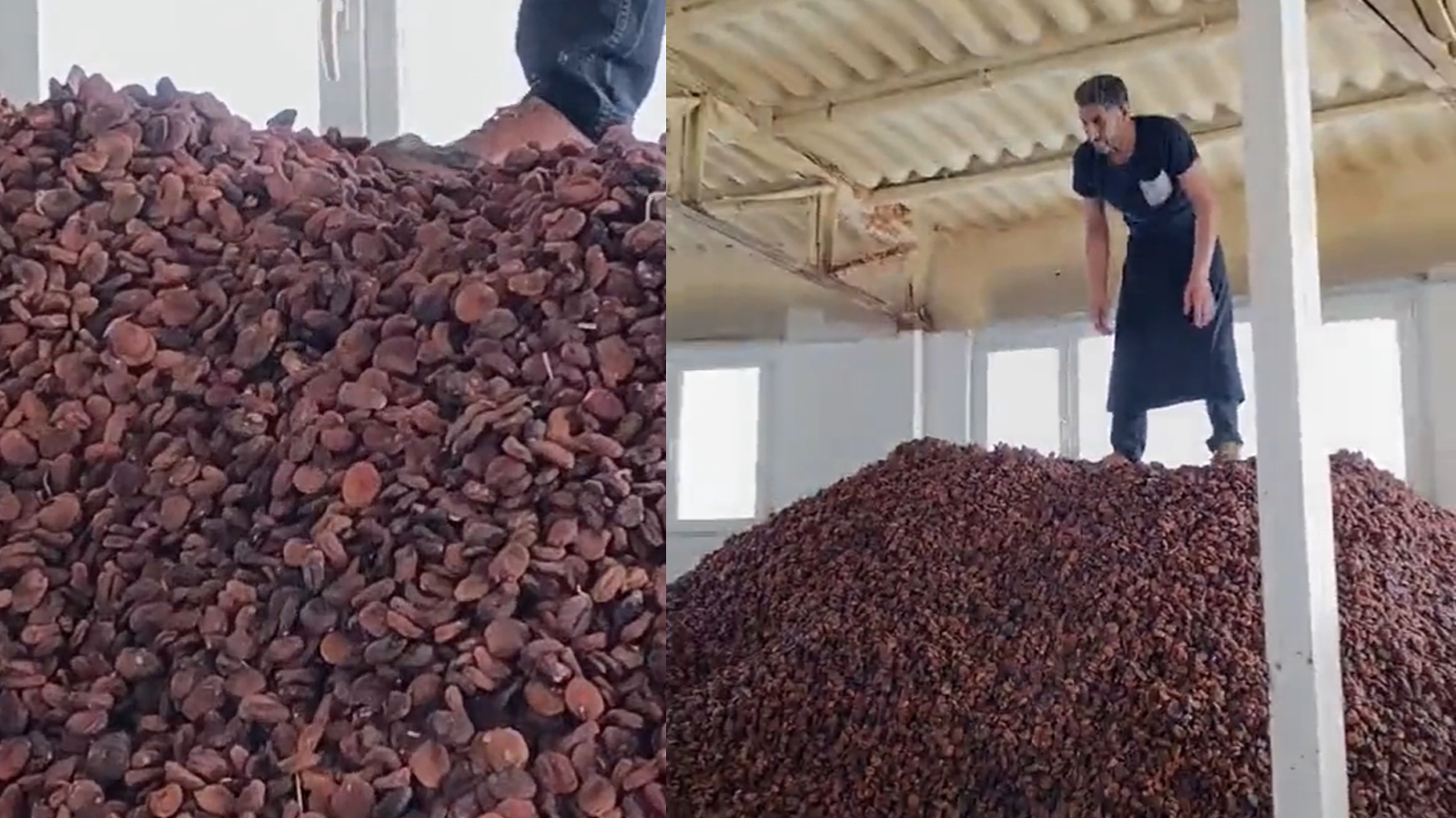 Kayısı imalathanesinde mide bulandıran görüntü! Ayakları ile ezip sosyal medyada paylaştı