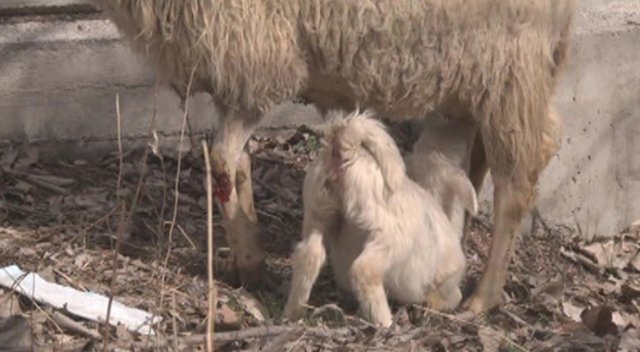 Isparta'da meydana gelen trafik kazasında bacağı kırılan koyun, o haliyle bile kuzusunu emzirmekten vazgeçmedi.