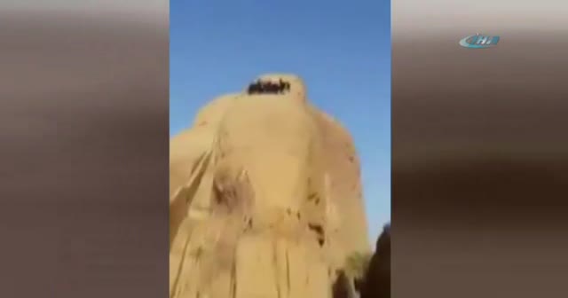 Suudi Arabistan’da kaydedilen görüntülerde, çok sayıda keçinin dik bir yamaçta mahsur kaldığı görülüyor. Keçileri kurtarmak içinse ilginç bir yola başvuruluyor. Kayalıkların altına atlama yatağı açılarak mahsur kalan hayvanlar yatağa yönlendiriliyor. Bir bir aşağı atlayan hayvanlar kurtarılırken o anlar kameraya yansıyor.