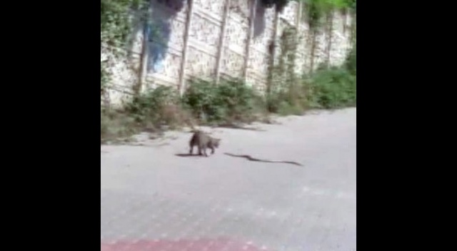 Zonguldak'ın Alaplı ilçesinde kedinin yılanla kavgası ilginç görüntüler oluşturdu.
