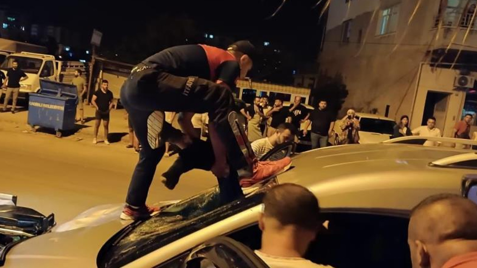 Kendisine çarpan aracın ön camından içeri girdi