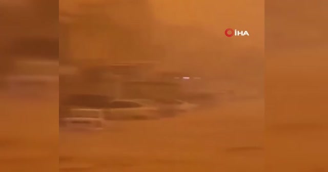 Suudi Arabistan'ın kuzeyinde etkili olan şiddetli yağışlar ve kum fırtınası nedeniyle kentte gökyüzü turuncuya boyandı.