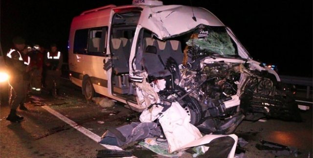 İstanbul’da oynanan Fenerbahçe-Akhisar Belediyespor maçından dönen taraftar kafilesini taşıyan minibüs, mermer yüklü TIR ile çarpışırken, 1 kişi öldü, 19 kişi de yaralandı.