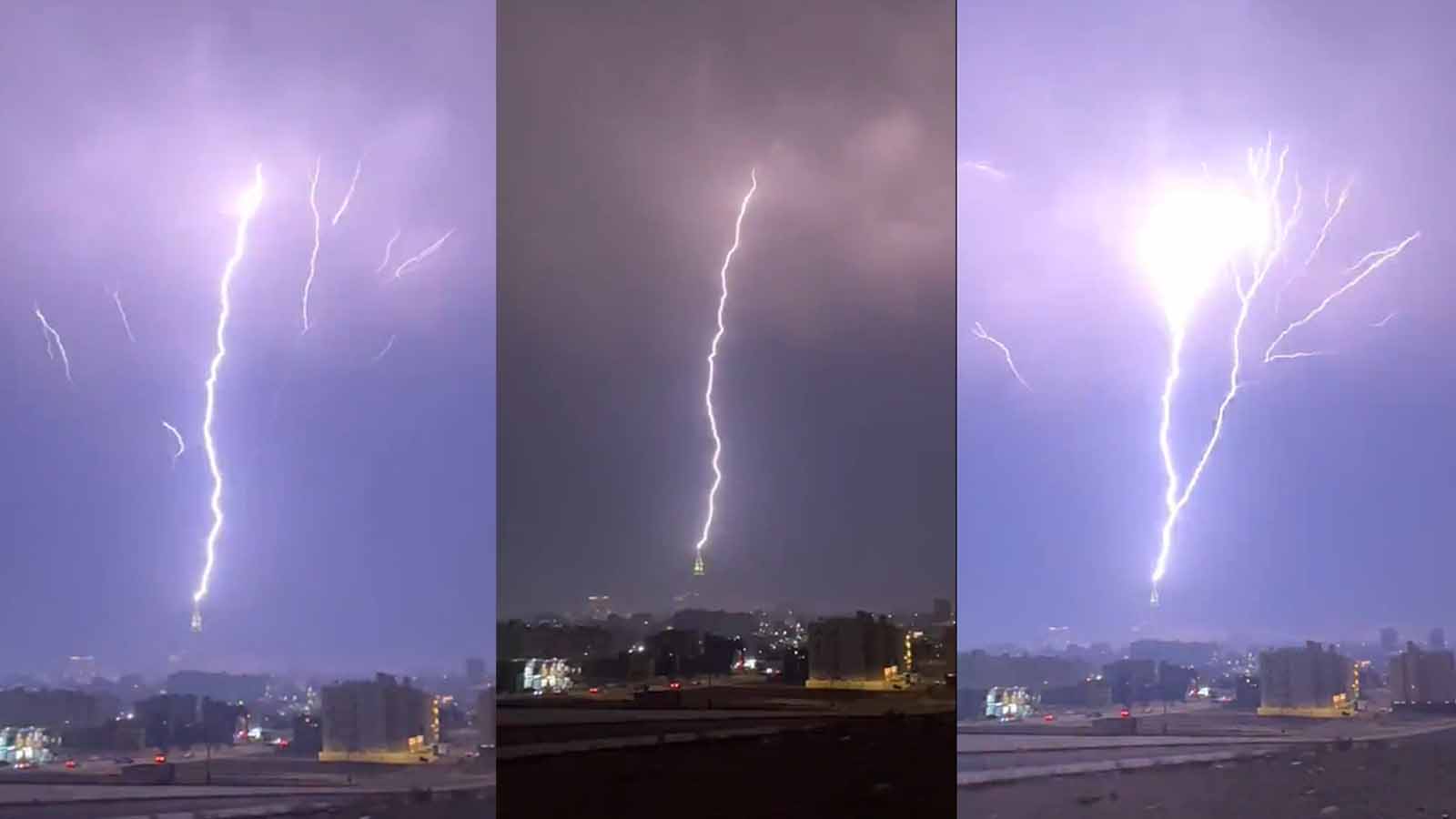 Suudi Arabistan Mekke'yi şiddetli yağış ve fırtına vurdu. Dünyanın en yüksek 3. yapısı olan Kraliyet Saat Kulesi'ne art arda düşen yıldırımlar geceyi aydınlattı. Bu anlar ise kameralara yansıdı. 601 metre yüksekliğe sahip olan binada, 5 yıldızlı otel, alışveriş merkezi ve müze bulunuyor.