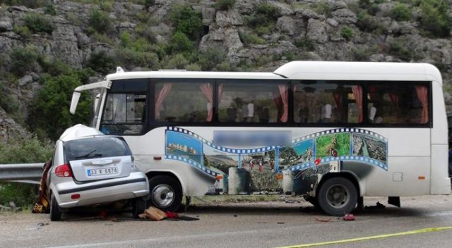 Mersin’in Silifke ilçesinde otomobil ile otobüsün çarpışması sonucu 2 kişi öldü, 5 kişi yaralandı.