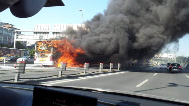 Metrobüste yangın!