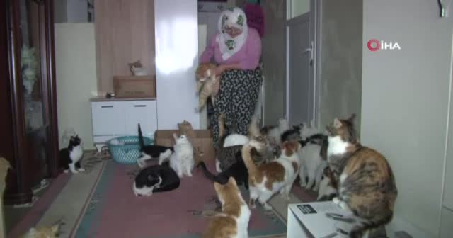 Nuriye Teyze kış nedeniyle 58 sokak kedisine evini açtı