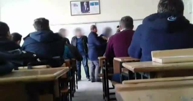 Sivas Atatürk Mesleki ve Teknik Anadolu Lisesinde bir öğretmenin öğrencileri dövdüğü anlar, cep telefonu kamerasına yansıdı.