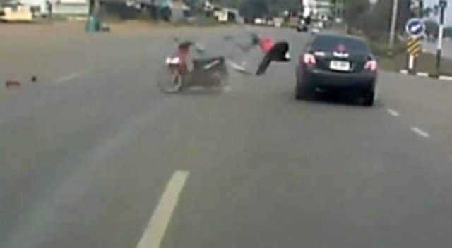 Amerika Birleşik Devletleri’nde bir otomobil, yola kontrolsüz biçimde giren motosiklete çarptı. Feci kazada motosiklet paramparça olurken, sürücü de ağır şekilde yaralandı.