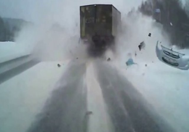 Kaygan zeminde kontrolden çıkan otomobilin kamyonla çarpışması sonucu 2 kişi öldü. Rusya’da kar yağışı dolayısıyla buzlanan zeminde kontrolü yitirilen otomobil, karşı şeride geçti ve kamyonla çarpıştı. Feci kazada otomobil paramparça olurken, içindeki 2 kişi de olay yerinde hayatını kaybetti.