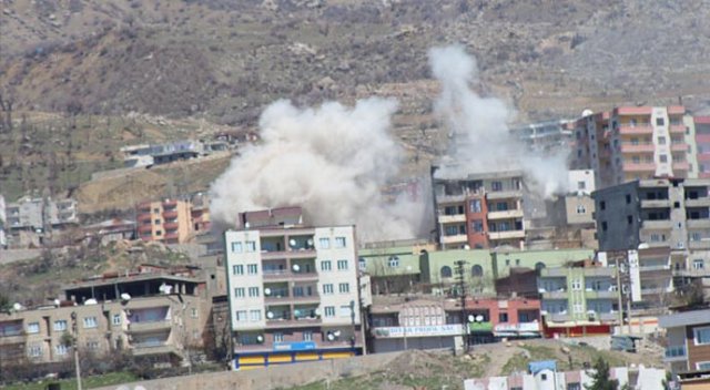 Şırnak'ta operasyon devam ediyor. PKK'lıların karargah ve gizlenme yeri olarak kullandığı bazı binalar, top atışına tutulurken, zırhlı araçlardan PKK'lıların teslim olması için sürekli anonslar yapıldı.