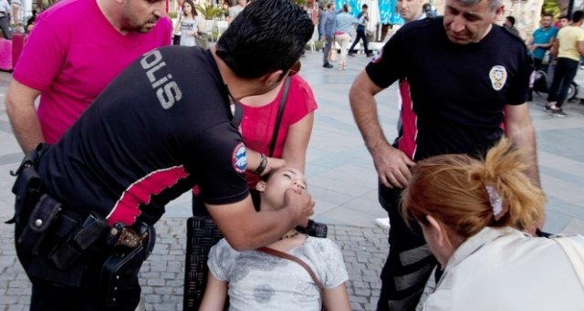 Antalya'da kalp romatizması rahatsızlığı olduğu öğrenilen ve yürürken bir anda yere yığılan 15 yaşındaki kıza ilk müdahaleyi devriye görevinde bulunan polis ekipleri yaptı. Baygınlık geçiren kızın dilinin boğazına kaçmasını engelleyen polis memuru, nefes almasını sağladığı çocuğu sağlık ekiplerine teslim etti.