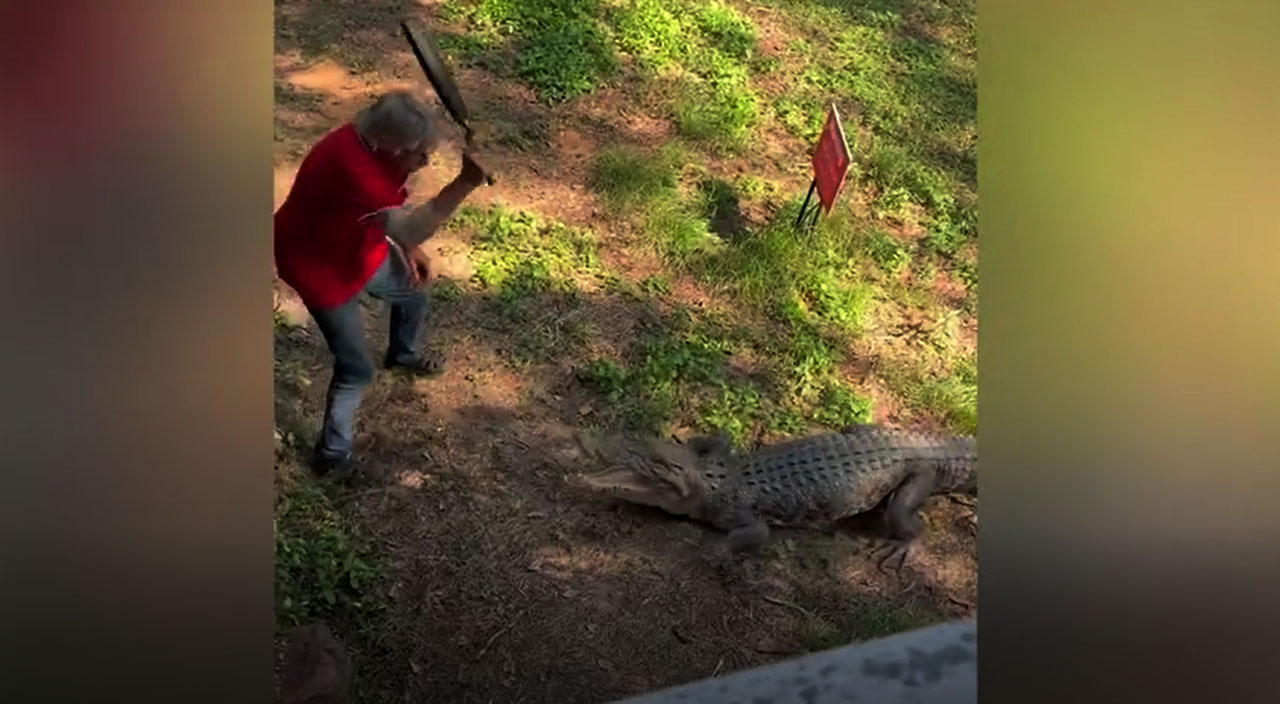 Restorana giren timsahı tavayla kovdu