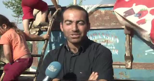 Diyarbakırlı 7 çocuklu çiftçi Askeri Kaçmaz, traktörün römorkunu suyla doldurarak, kavurucu sıcaklardan bunalan çocukları için havuz yaptı.