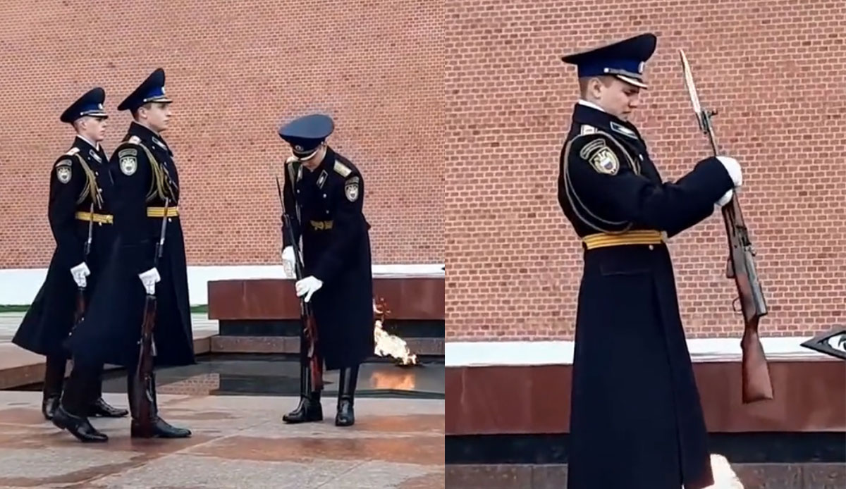 Rus asker nöbet değişimi sırasında silahını defalarca düşürdü