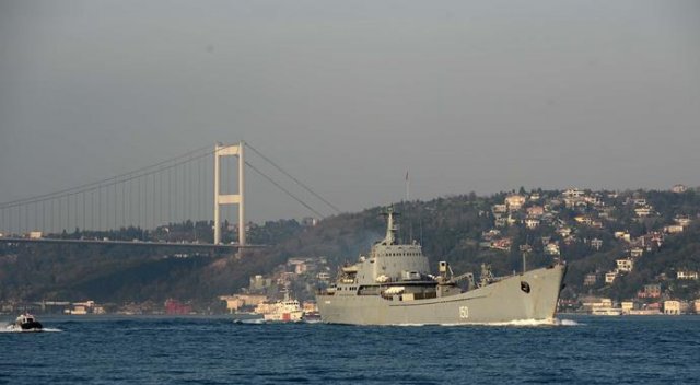 Rus savaş gemisinin geçişi sırasında havadan ve karadan önlem