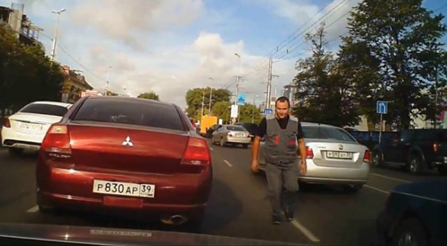 Rusya’nın Kaliningrad şehrinde yolda kedi gören sürücü, aşağı inip onu kurtardı.