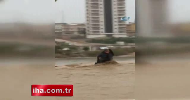 Mersin'de dün geceden beri etkili olan kuvvetli yağışlar sele neden oldu. Yolun karşısına geçmek isteyen 2 kişi ise sel sularına kapıldı. Biri bayan 2 kişi güçlükle yolun karşısına geçebildi.