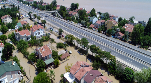 İstanbul’da etkili olan kuvvetli yağış sonrası selin vurduğu Silivri bölgesi havadan görüntülendi.