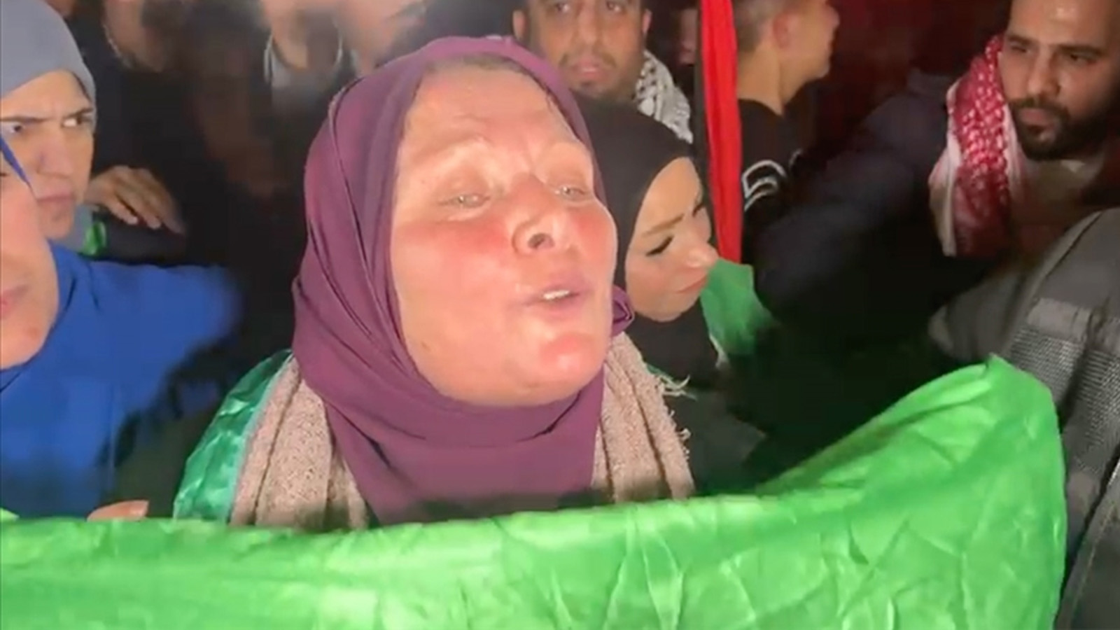 İsrail ve Hamas arasında yapılan esir takasıyla serbest kalan Filistinli Hanan Bergusi, 'Direnişçiler olmasaydı özgürlüğü göremezdik.' dedi. Bergusi konuşmasının ardından İzzeddin el-Kassam Tugaylarını öven sloganlar attı.