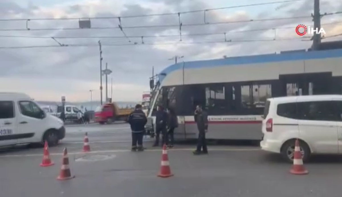 Eminönü'nden Sirkeci istikametine doğru seyir halinde olan tramvay raydan çıkarak elektrik direğine çarptı. Bu kazanın ardından aynı durakta başka bir tramvay daha raydan çıktı.
