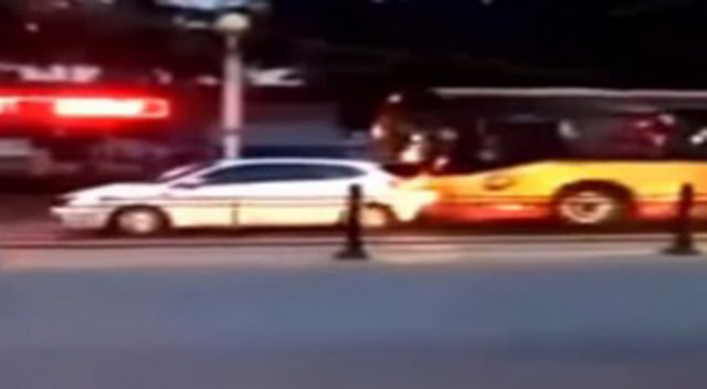 Otobüs, önünde duran aracı sürükleyerek götürdü. Bu ilginç olay Çin’de yaşandı. Önünde duran araç sahibine sinirlenen otobüs şoförü, otomobili vura vura sürüklemeye başladı.