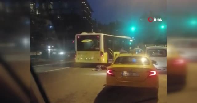 Taksicinin ittiği kadın otobüsün altında kalmaktan son anda kurtuldu