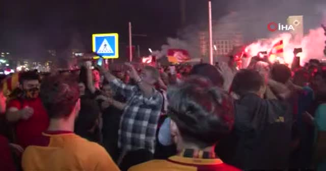 Galatasaraylı taraftarlar Taksim İstiklal Caddesi’nde toplanarak 22. şampiyonluğu kutladı.