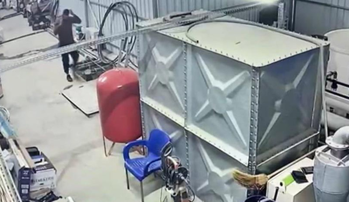 Mersin'in Tarsus ilçesinde fide üretim tesisinde çalışan bir işçi, makine dairesinde telefonla konuşarak yürüdüğü sırada üzeri metal levha ile kapatılmış bodrum katına düşerek ağır yaralandı. O anlar iş yerinin güvenlik kamerasına yansıdı.