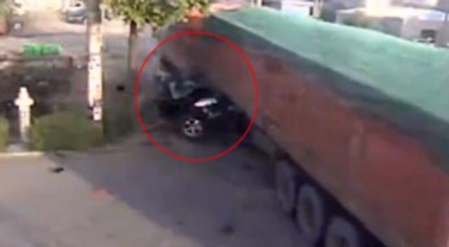 Çin’de yola kontrolsüz çıkan cip, TIR’ın altında kaldı. Cipin TIR’ın altında adeta kağıt gibi ezildiği o anlarsa güvenlik kamerasına yansıdı. Feci kazada cipteki 3 kişi yaralanırken, yaralılardan 2’sinin durumunun ağır olduğu belirtildi.