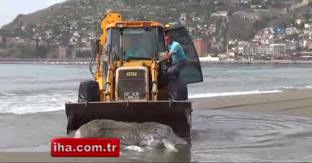 Antalya’nın Alanya ilçesinde sahile vurmuş ölü inek görenleri şaşkına çevirdi.