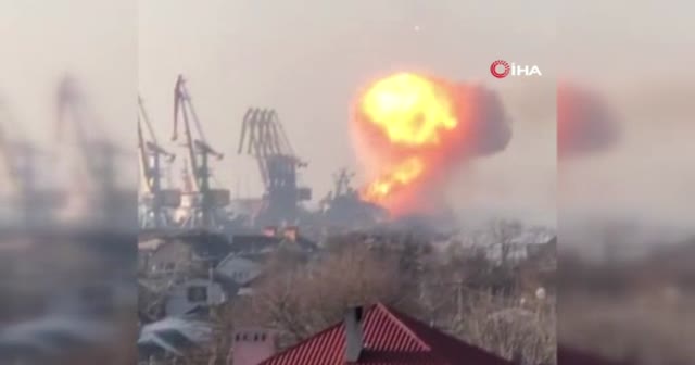 Ukrayna ordusu, Berdyansk şehrinde Rusya’nın kontrolündeki limanda bulunan Orsk çıkarma gemisini vurdu.