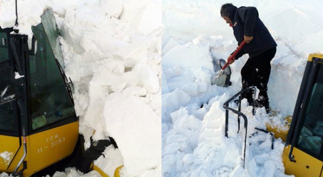Van-Bahçesaray kara yolunda, kar yığınlarını yoldan kaldırma çalışması yürüttüğü sırada çığ altında kalan operatör, arkadaşları tarafından kurtarıldı.