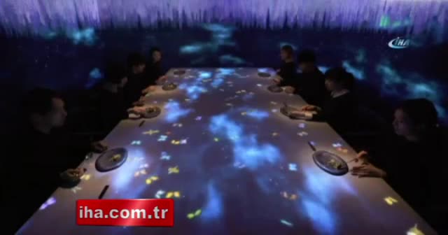 Tokyo merkezli bir sanat galerisinin tasarladığı yeni nesil restoran, göz ve kulağa hitap eden teknolojileriyle de dikkat çekiyor.