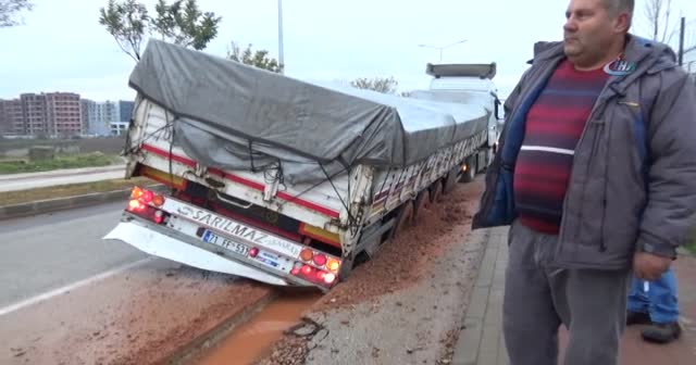 Bursa’da altyapı çalışması nedeni ile açılan ve düzgün kapatılmayan yolun çökmesi sorucu 2 TIR yan yattı.