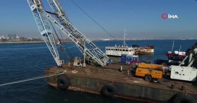 Zeytinburnu sahilindeki dev vinç 'hayalet gemi' için kuruldu
