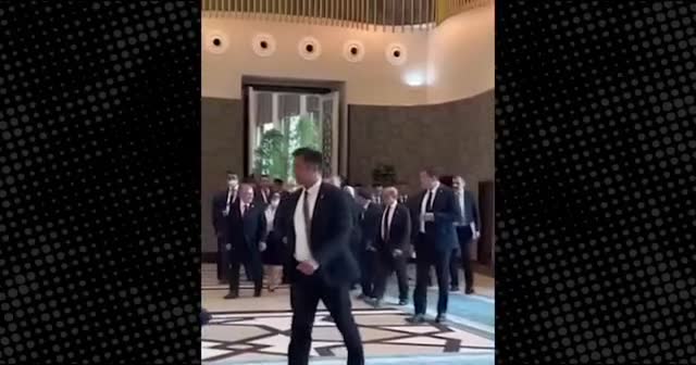 Cumhurbaşkanı Erdoğan ve Rus lider Vladimir Putin’in’in Şanghay İşbirliği Örgütü zirvesinde baş başa bir görüşme gerçekleştirmeden evvel görüşmenin yapılacağı odaya kol kola girerek yürüdü.