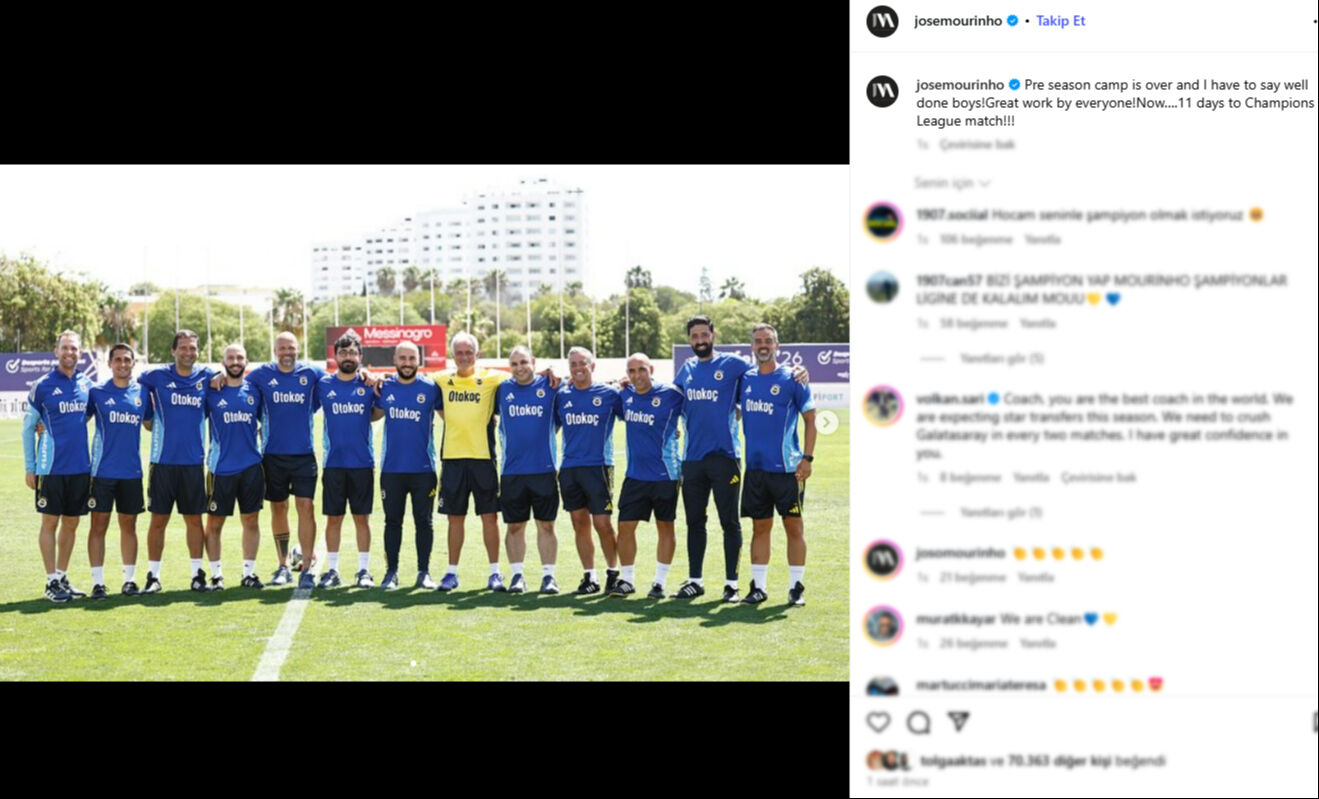 Tecrübeli antrenör, bu sözlerinden kısa süre sonra Instagram hesabından yaptığı paylaşım ile Şampiyonlar Ligi'ne değindi. Mourinho, "Sezon öncesi kampı sona erdi ve 'Aferin çocuklar' demeliyim. Herkes harika bir iş çıkardı! Şampiyonlar Ligi maçına 11 gün kaldı!" mesajını yazdı.